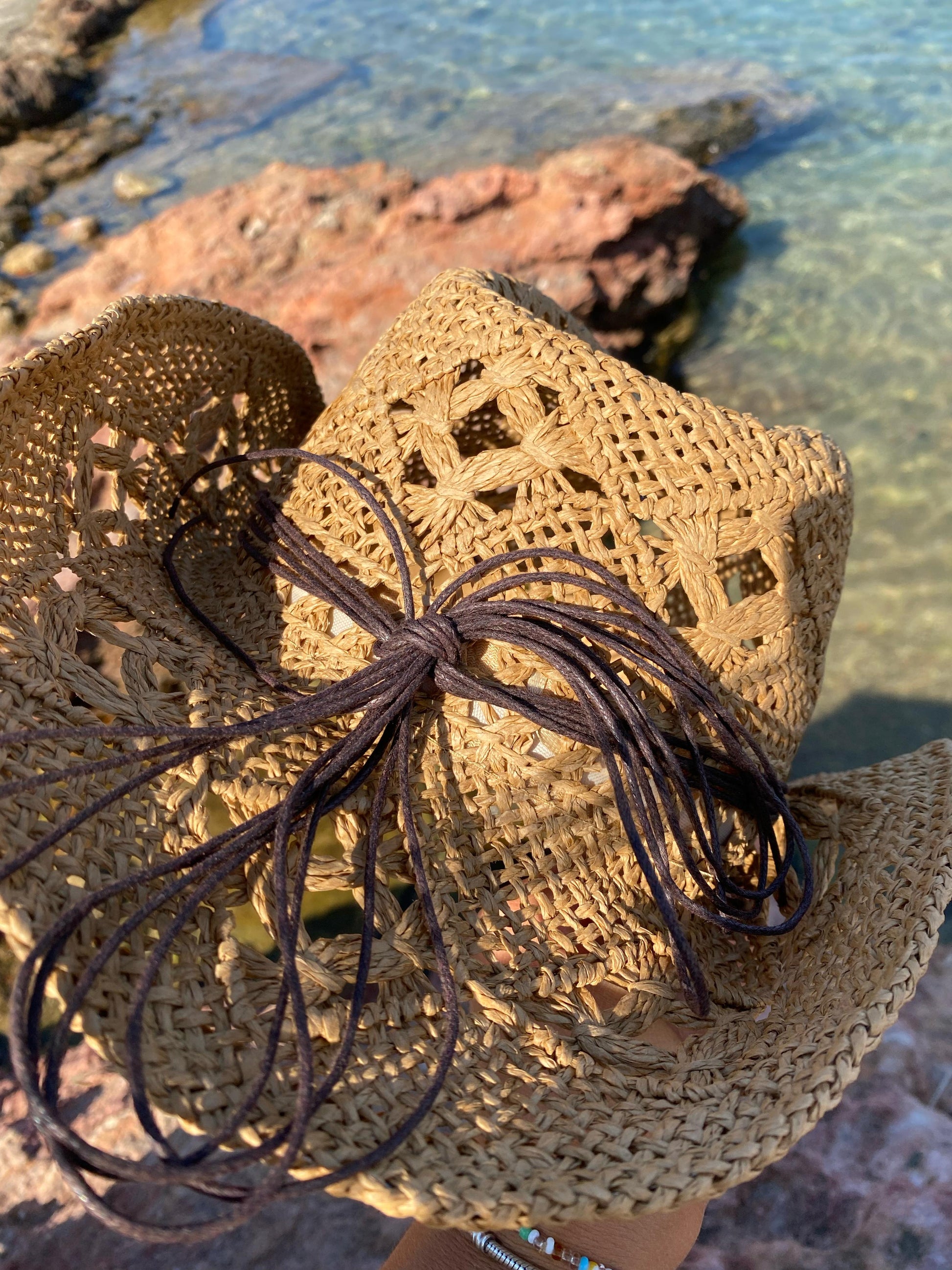 Channel effortless island vibes with our Ibiza Straw Cowgirl Hat – a sun-soaked staple for free spirits and beach lovers. Handwoven from natural straw, this lightweight hat features a classic cowgirl silhouette with a modern boho twist, perfect for dancing at beach clubs, exploring local markets, or watching golden sunsets on the coast.