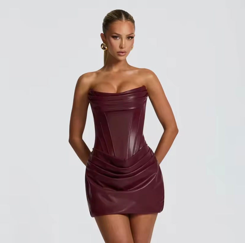 Sculpted, sultry, and unapologetically bold — the Inferno PU Corset Mini Dress is crafted to captivate. Made from high-gloss PU leather, it wraps the body in a molten, figure-defining silhouette that feels as daring as it looks.